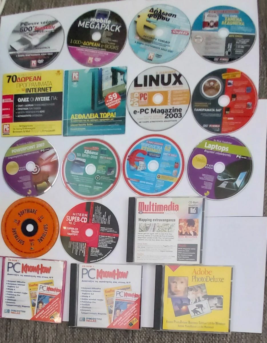 18 CDs ΤΩΝ ΠΕΡΙΟΔΙΚΩΝ PC MAGAZINE , PC KNOW HOW , PC WORLD , HITECH ,COMPUTER STEP περιόδου 1998 – 2010 ΠΑΚΕΤΟ 25 ΕΥΡΩ σε άριστη κατάσταση.