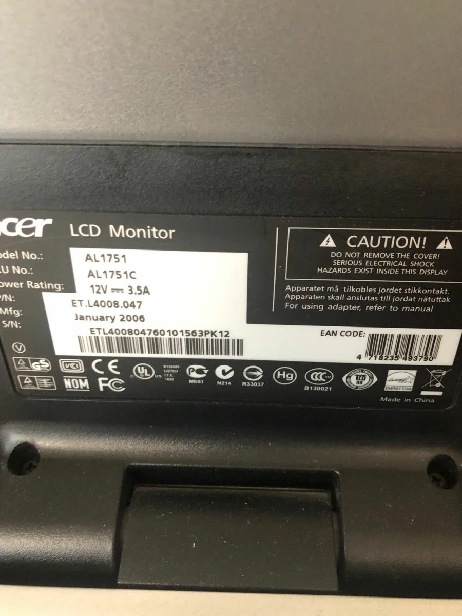 Acer AL1751 17 Inch LCD Monitor