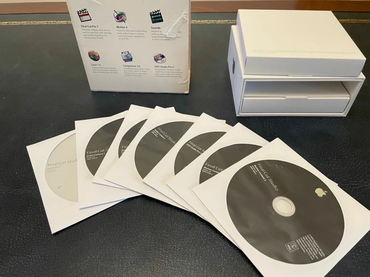 Αχρησιμοποίητο πρόγραμμα μοντάζ FINAL CUT PRO. 7 dvd εκ των οποιων το ενα περιεχει οδηγιες. Ολα τα δισκακια σαν καινουργια. Μονο το εξωτερικο κουτι εχει φθορα. Συνοδεύεται απο 2 βιβλια στ’Αγγλικα που ειναι πολυ βοηθητικα για οποιον ξεκινά μαθήματα μοντάζ.