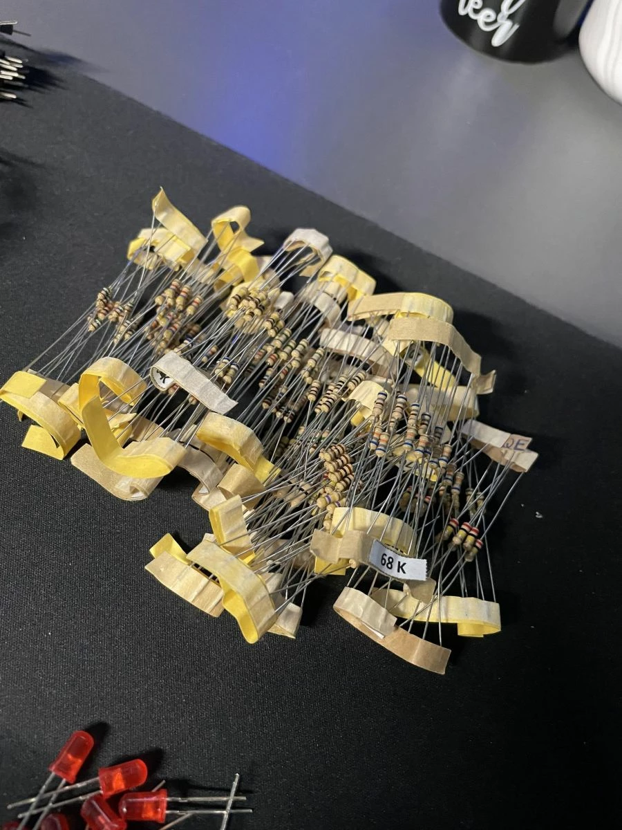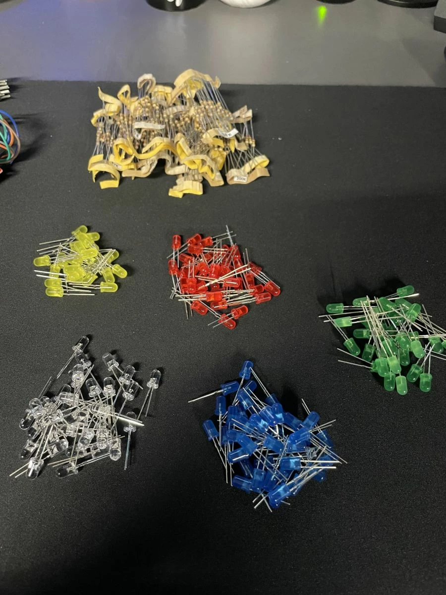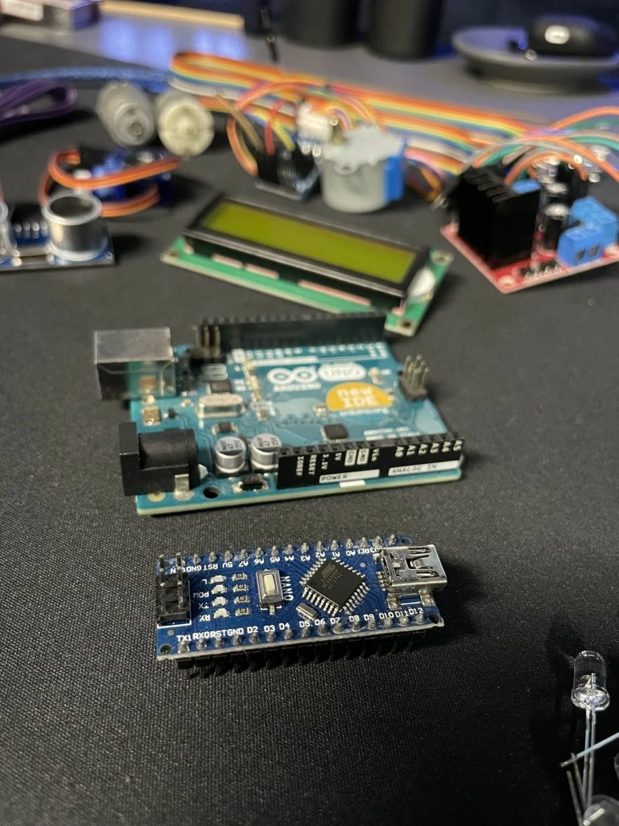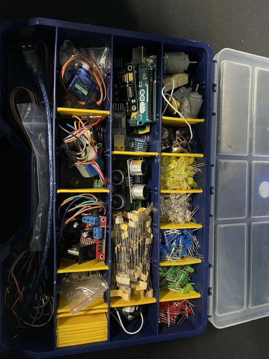 Πλήθος από αισθητήρες, led, controllers, αντιστάσεις, καλώδια, motors.