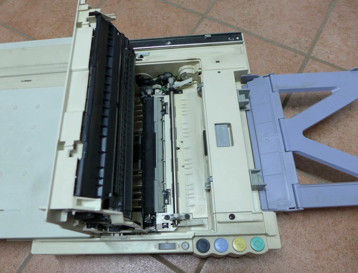 Το σκέπαστρο του τζαμιού είναι κολλημένο με ταινία. Το τόνερ πρέπει να είναι ακόμα μισογεμάτο, Κατά τα υπόλοιπα είναι σε καλή κάτάσταση.