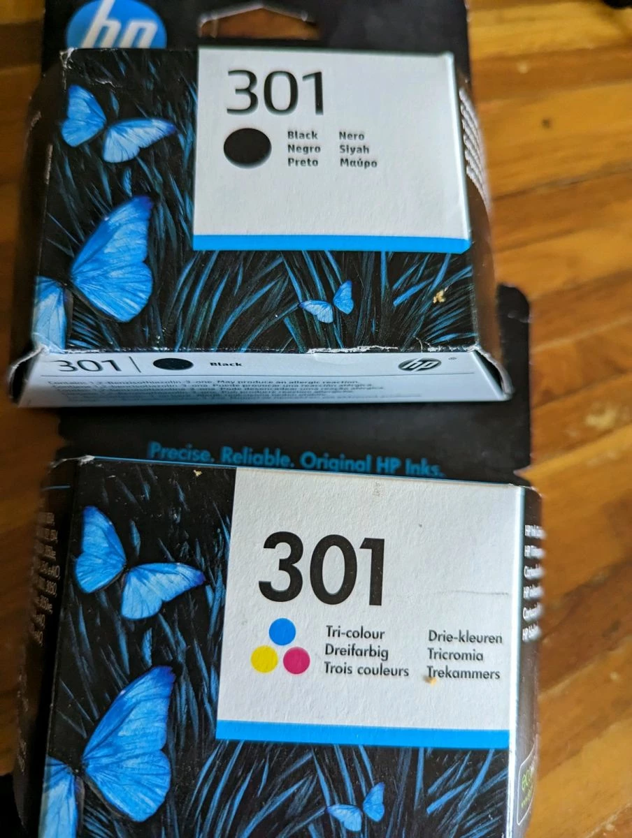γνήσια μελάνια hp 301, ένα μαύρο και το ένα έγχρωμο