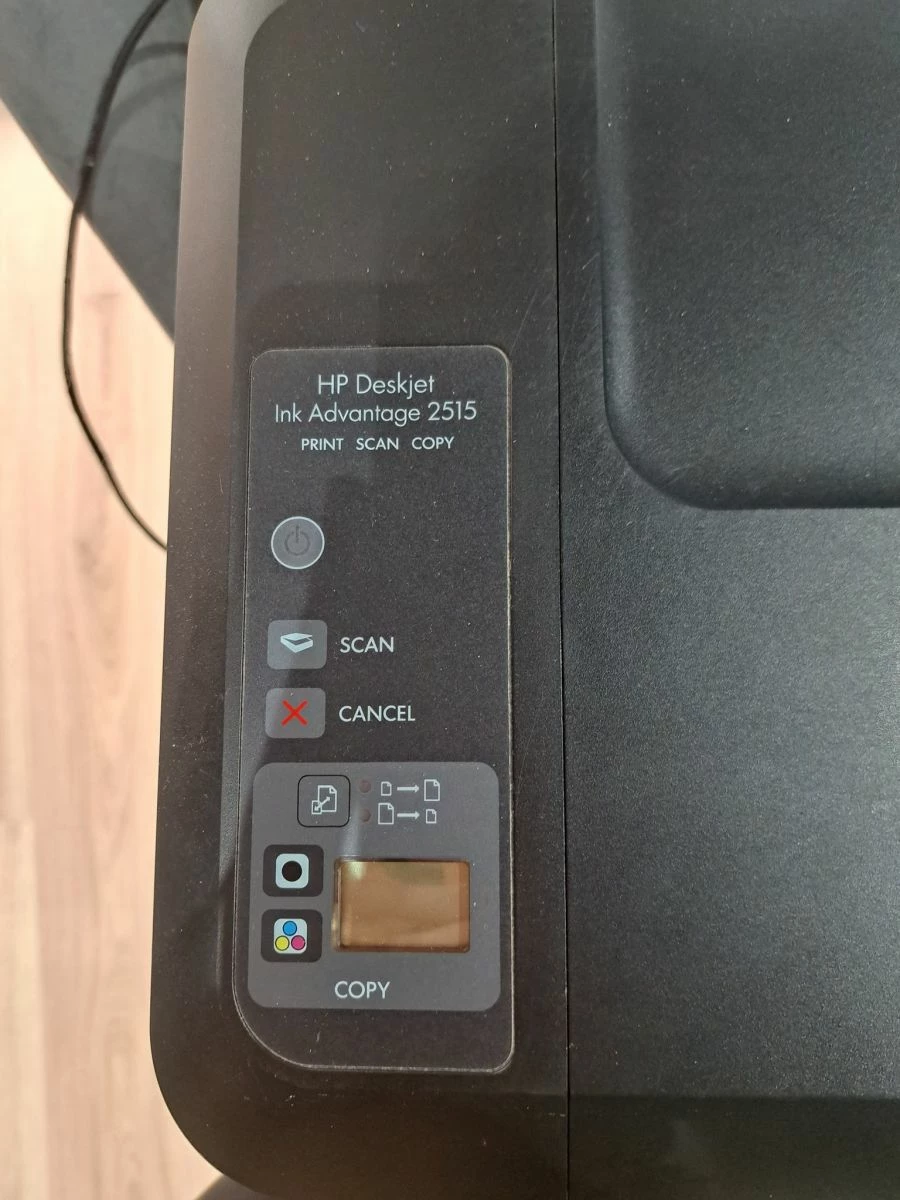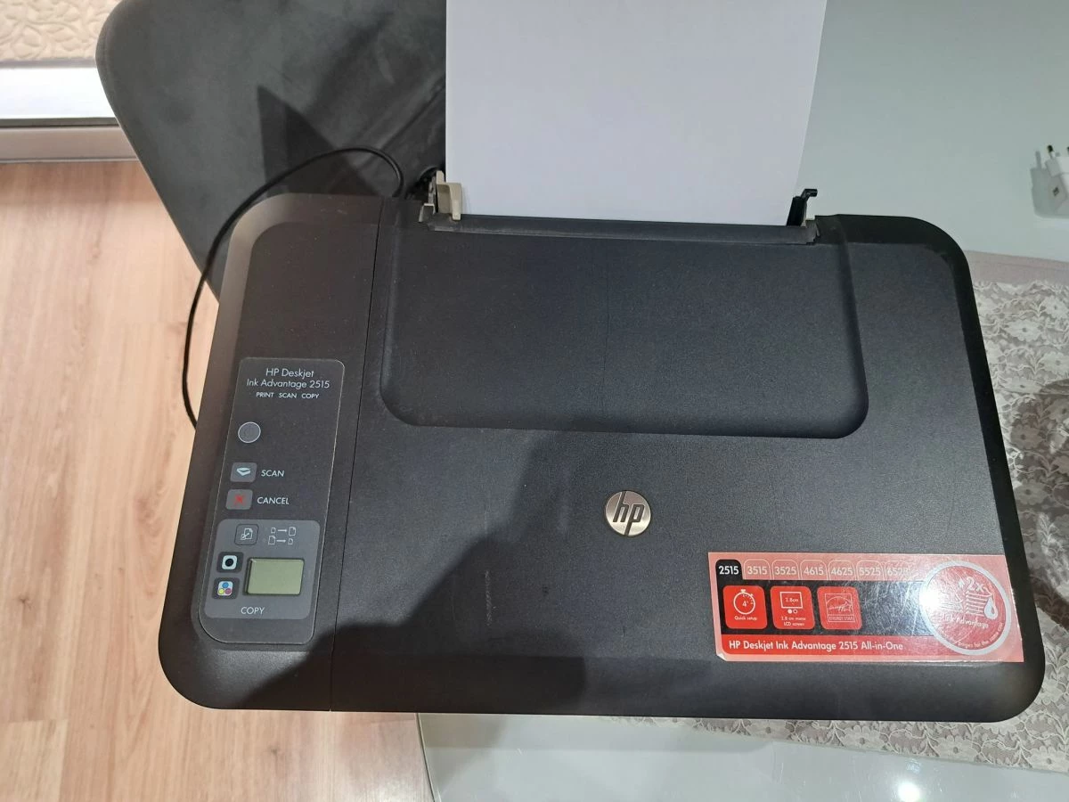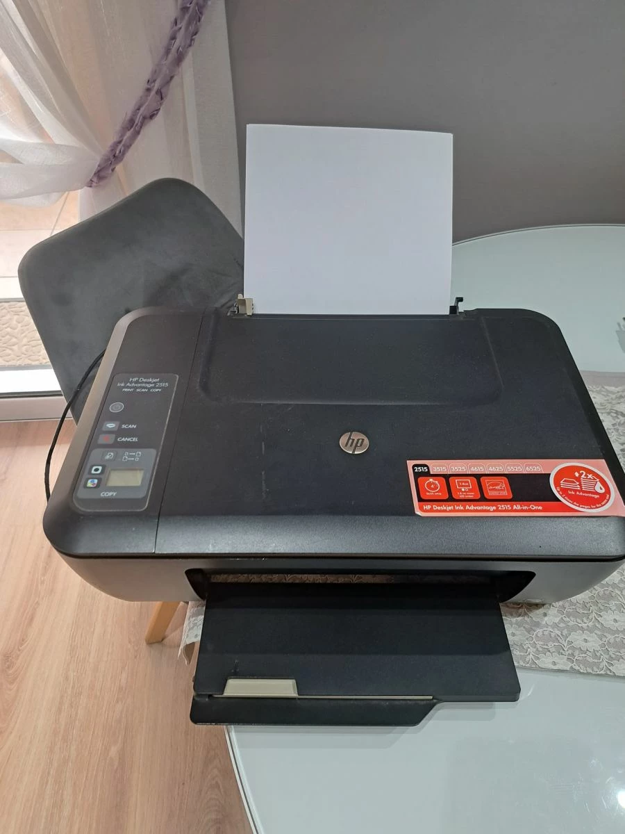 Εκτυπωτής Hp Deskjet Ink Advantage 2515 μεταχειρισμένος. Σε πολύ καλή κατάσταση και ενσύρματος. Δεν περιλαμβάνει καλώδιο σύνδεσης με υπολογιστή. Δεν διαθέτει σύνδεση WiFi. Η εκτύπωση πραγματοποιείται με δυο μελάνια. Περιέχει δύο μελάνια, ένα έγχρωμο και ένα ασπρόμαυρο. Έχει δυνατότητα σάρωσης, αλλά δεν πραγματοποιεί εκτύπωση διπλής όψης αυτόματη. Ρυθμίζεται για εκτύπωση σε χαρτί μικρότερου μεγέθους Α4.