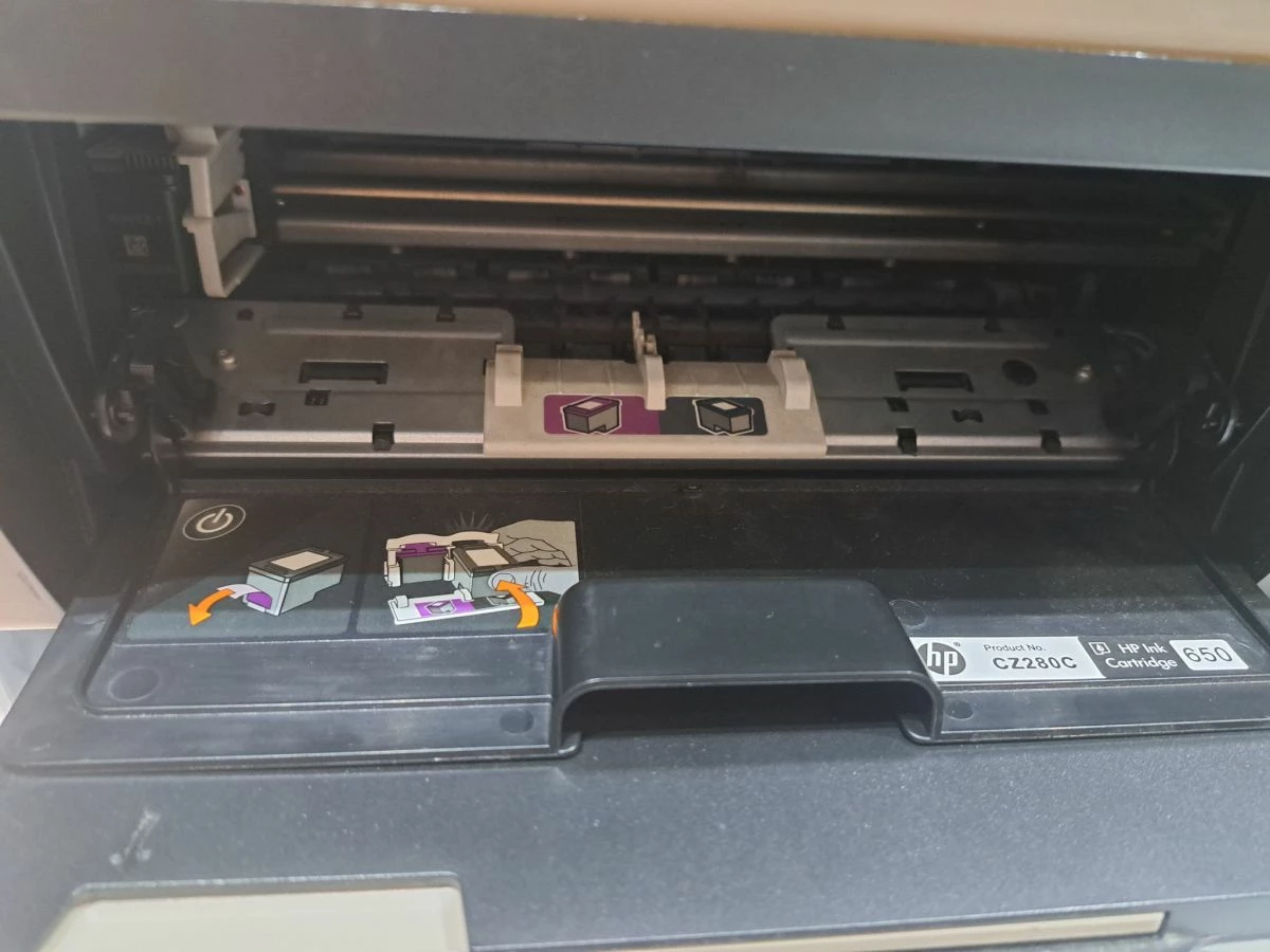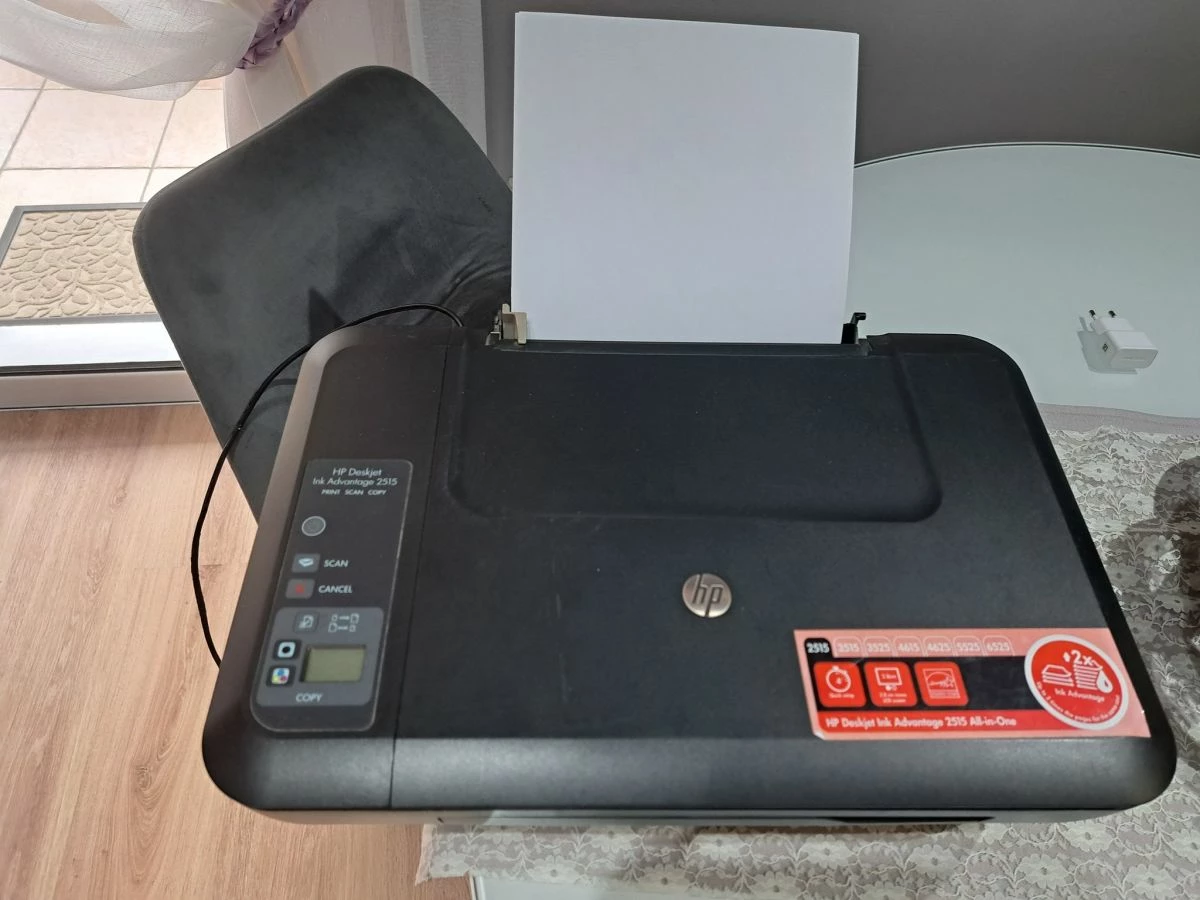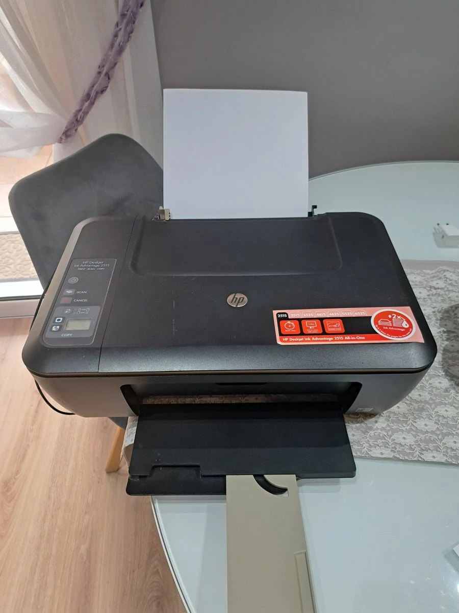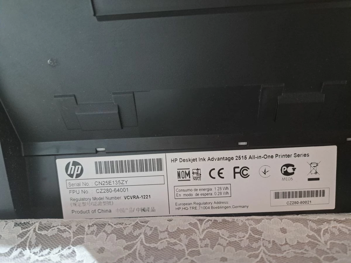 Εκτυπωτής Hp Deskjet Ink Advantage 2515 μεταχειρισμένος. Σε πολύ καλή κατάσταση και ενσύρματος. Δεν περιλαμβάνει καλώδιο σύνδεσης με υπολογιστή. Δεν διαθέτει σύνδεση WiFi. Η εκτύπωση πραγματοποιείται με δυο μελάνια. Περιέχει δύο μελάνια, ένα έγχρωμο και ένα ασπρόμαυρο. Έχει δυνατότητα σάρωσης, αλλά δεν πραγματοποιεί εκτύπωση διπλής όψης αυτόματη. Ρυθμίζεται για εκτύπωση σε χαρτί μικρότερου μεγέθους Α4.