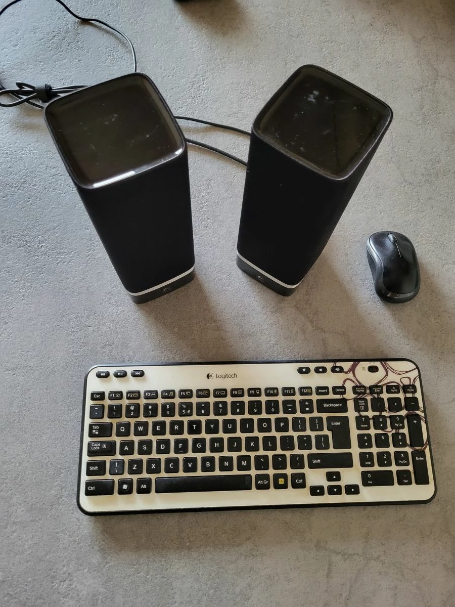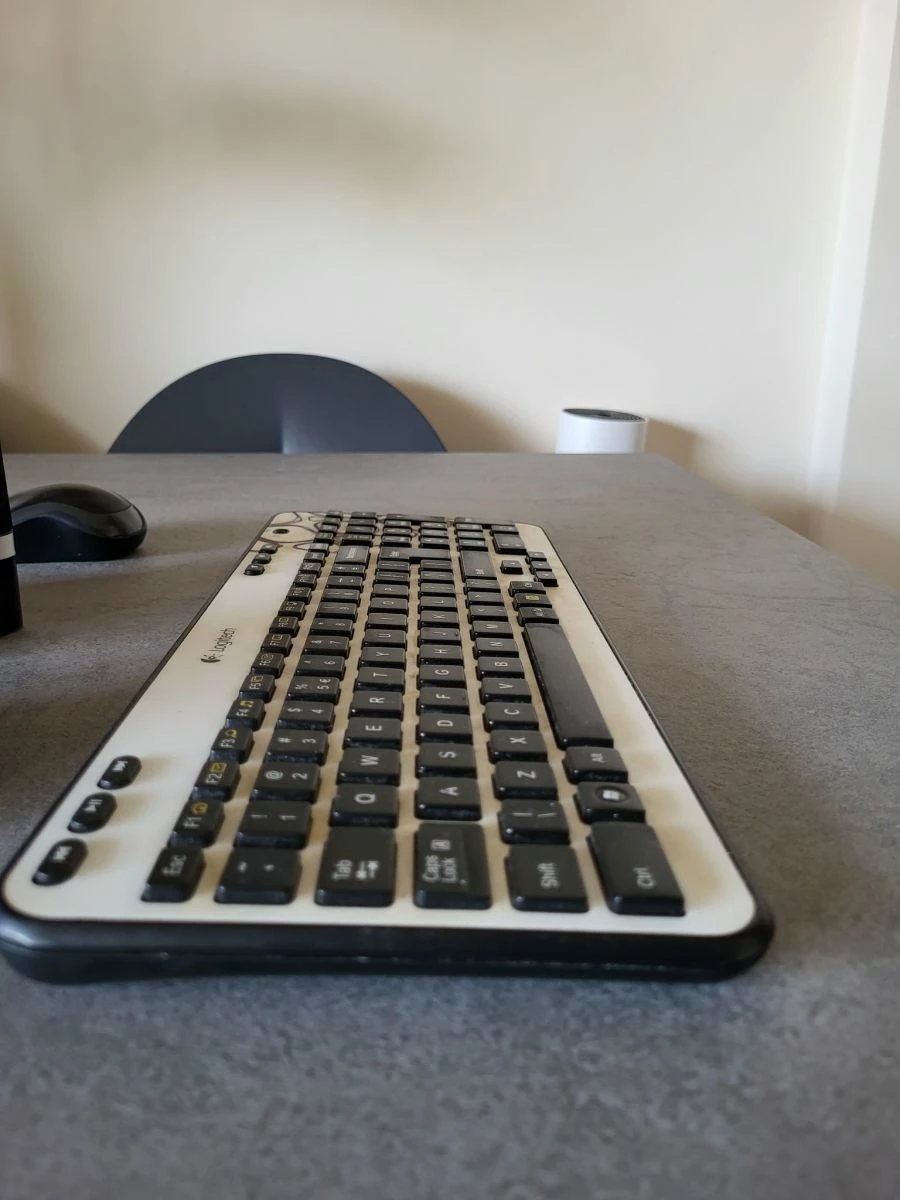 – Ασύρματο πληκτρολόγιο Logitech K360 (το ένα ποδαράκι είναι χαλαρό και ξεκουμπώνει αν βρει εμπόδιο) https://www.skroutz.gr/s/341338/Logitech-K360– Ασύρματο-Πληκτρολόγιο-Αγγλικό-US.html