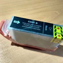 Ημιτασιόν μελάνι μαύρο εντός της συσκευασίας του, για τους εκτυπωτές CANON που φαίνονται στις φωτογραφίες.
