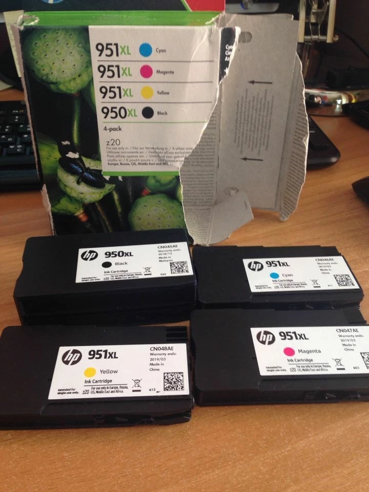 Πουλάω σετάκι μελανιών HP 950XL/951XL, μαύρο, κόκκινο, μπλε, κίτρινο ΑΥΘΕΝΤΙΚΑ. Έχουν χρησιμοποιηθεί ελάχιστα και τα πουλάω γιατί μου χάλασε ο εκτυπωτής μου. Έχουν λήξει όμως. Η φτηνότερη τιμή στην αγορά αυτού του combo είναι στα 140 ευρώ.