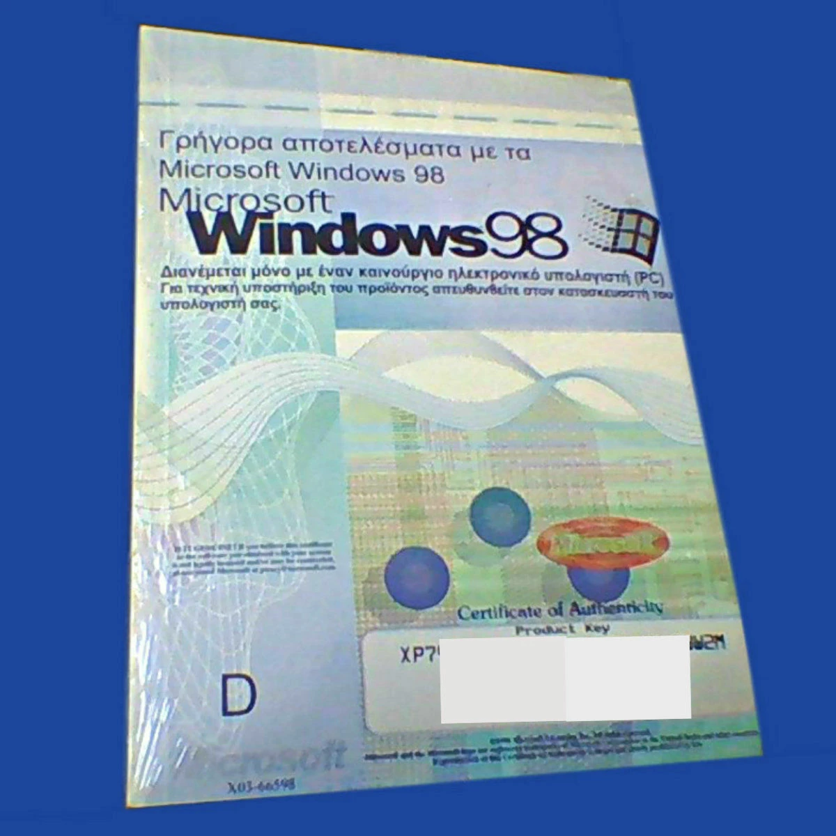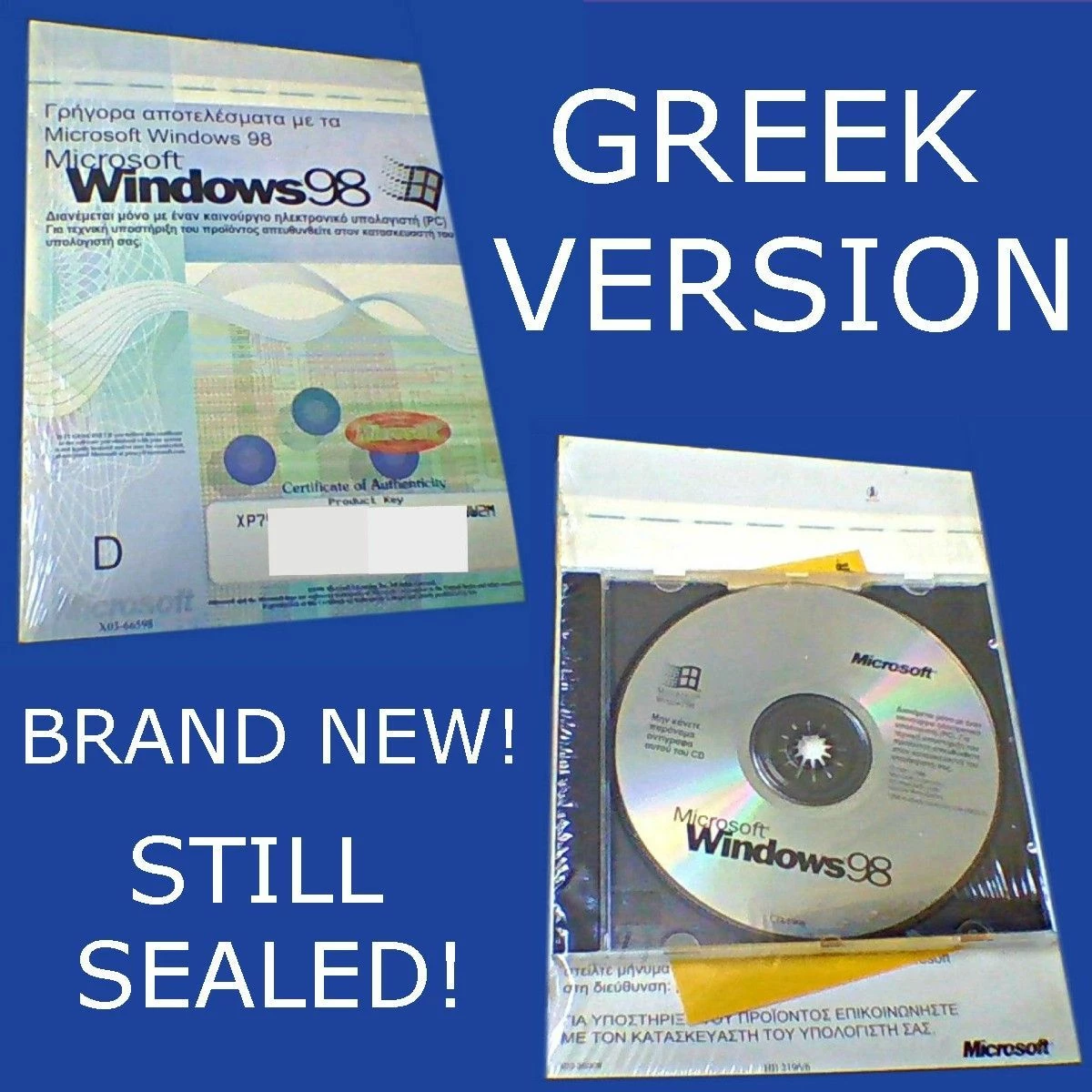 Vendora Microsoft Windows 98 Operating System First Edition Greek Version Greece Ελληνικη Α Εκδοση X03-66598 λογισμικο Software 98 CD & Manual καινουργιο σφραγισμενη συσκευασια