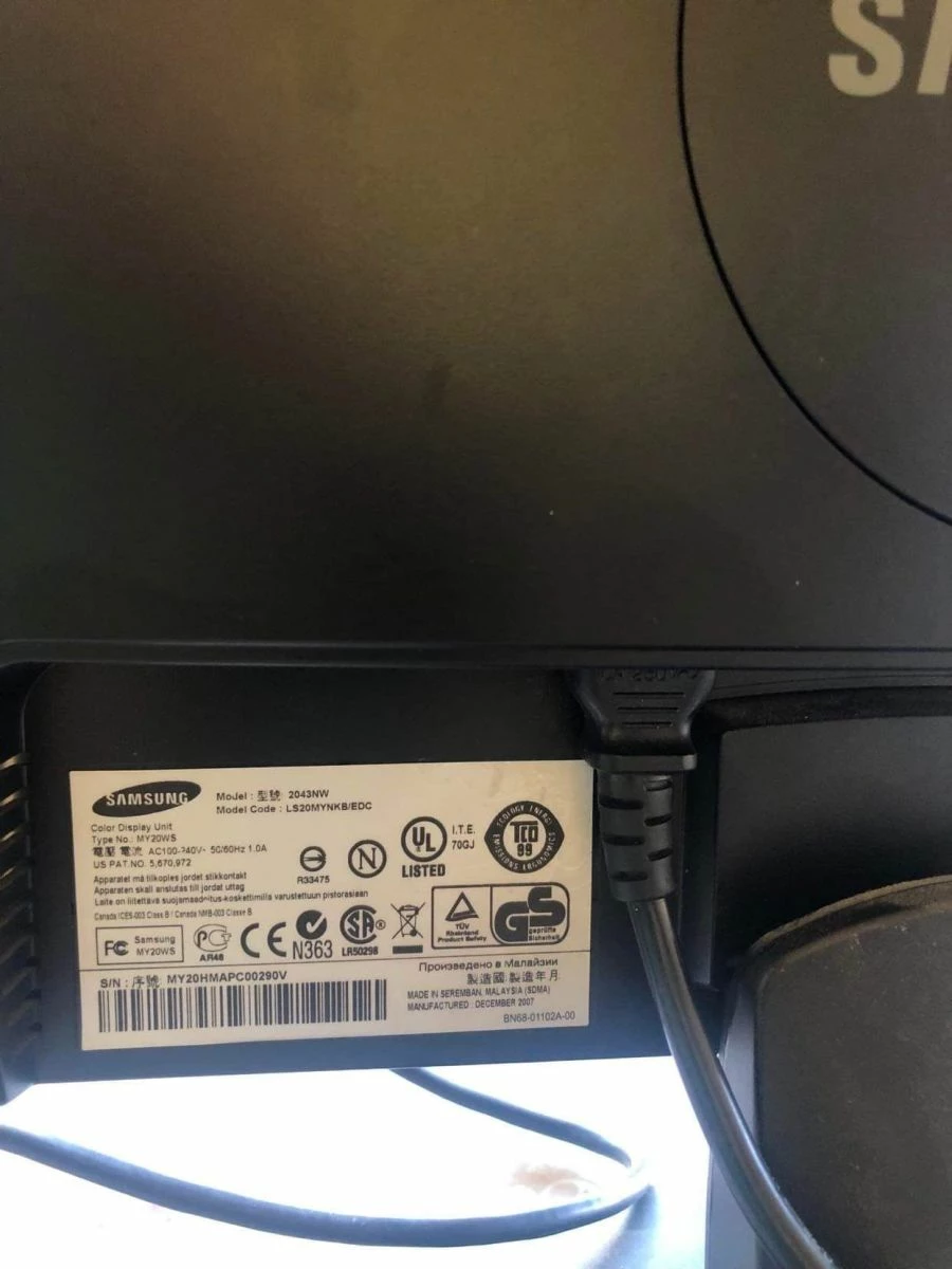 Samsung monitor model syncmaster 2043NW. VGA input resolution 1900*1050. Λειτουργεί καλώς