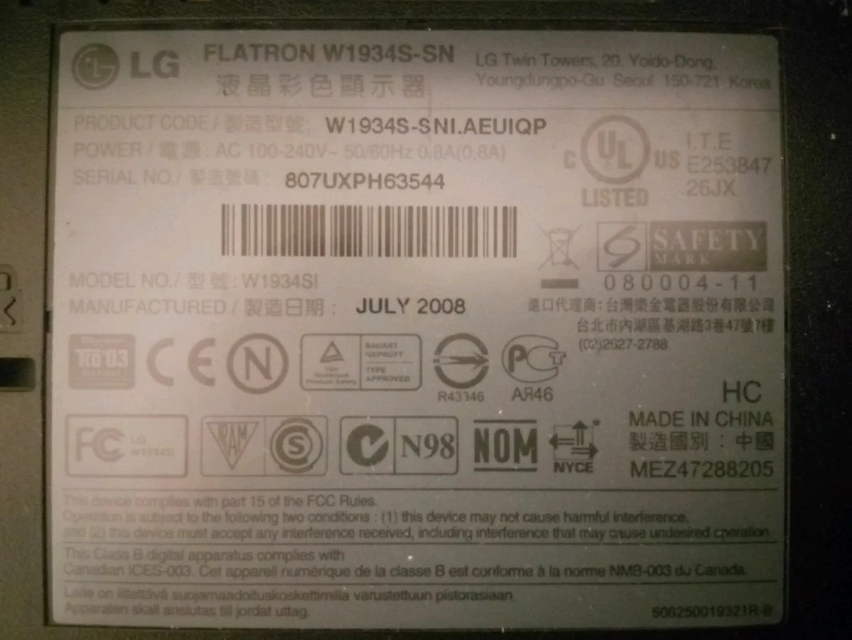 Οθόνη LG Flatron W1934S-SN 48.3 cm (19″) 1440 x 900 pixels Silver