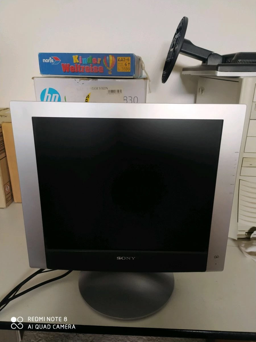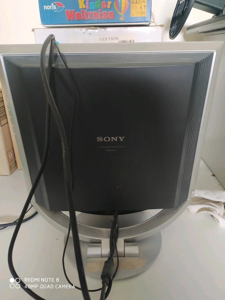τετράγωνη οθόνη 17” με ενσωματωμένα ηχεία και με τα καλώδια της