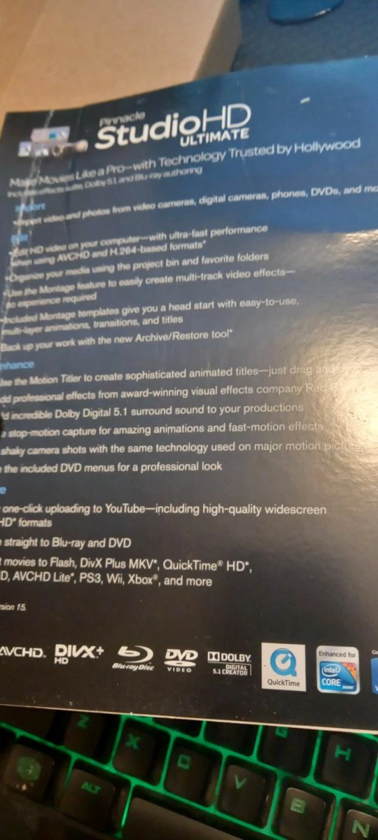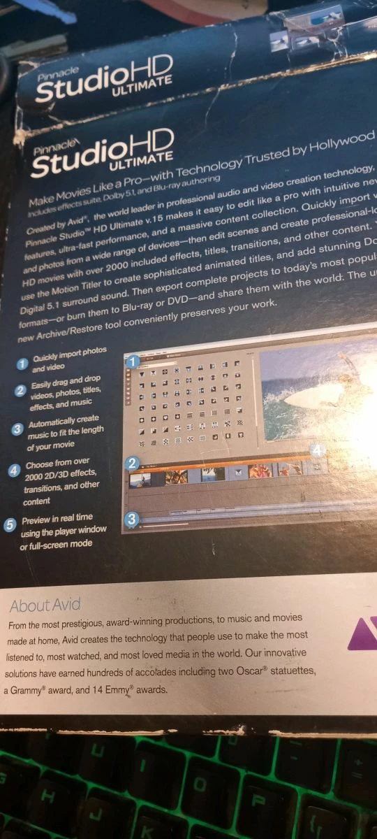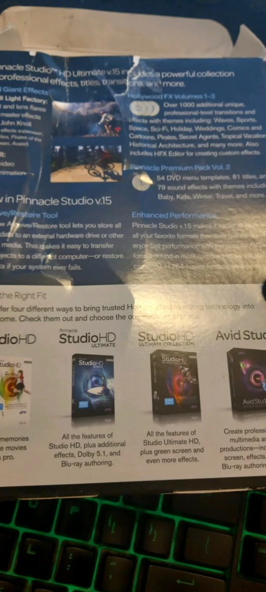 Pinnacle Studio 15. Το καλλίτερο και πιο αξιόπιστο πρόγραμμα επεξεργασίας βίντεο, στην καλλίτερη έκδοση που βγήκε από αυτή την εταιρεία. Δεν κυκλοφορεί πλέον στο εμπόριο. Με δυνατότητα δωρεάν αναβάθμισης από την ίδια την εταιρεία. Το cd είναι σε άριστη κατάσταση.