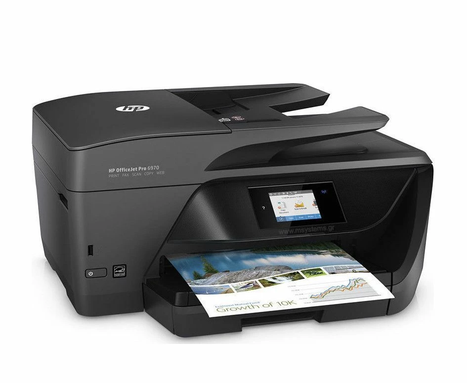 Με το πολυμηχάνημα OfficeJet Pro 6970 AiO της HP θα μπορέσετε να κάνετε τα πάντα, όπως εκτύπωση, σάρωση και αντιγραφή. Χρησιμοποιεί τεχνολογία με μελάνια (inkjet) και μπορεί να τυπώσει τόσο έγχρωμα, όσο και ασπρόμαυρα. Μέσω καλωδίου ethernet ή WiFi έχει τη δυνατότητα να συνδεθεί στο δίκτυό σας και έτσι να μπορέσετε να εκτυπώσετε από όποιονδήποτε υπολογιστή ή κινητό από απόσταση, χωρίς να χρειάζεται η σύνδεση μέσω καλωδίου USB. Συνδέοντάς τον με την γραμμή του τηλεφώνου θα μπορέσετε να στείλετε και να λάβετε fax. Προσφέρει αυτόματη εκτύπωση διπλής όψης και έτσι δεν χρειάζεται να γυρίζετε εσείς το χαρτί χειροκίνητα.