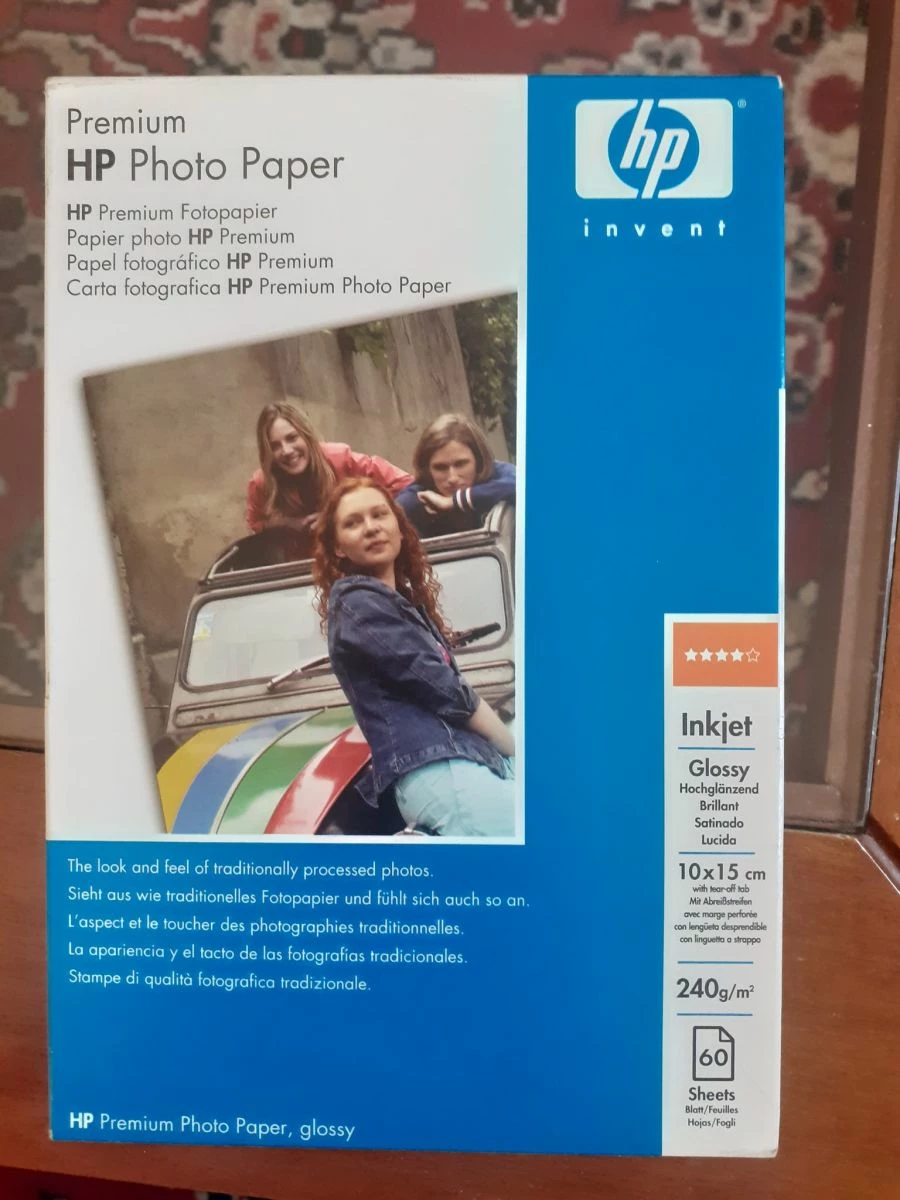 Φωτογραφικο χαρτί HP premium Fotopaper,Glossy, 10×15 cm, Inkjet5. Συσκευασία 60 χαρτιών. Διαθεσιμότητα 12 κουτιά . Τιμή ανά κουτί 3€ . Πώληση κ μεμονωμένα